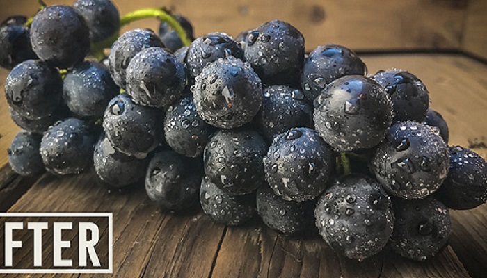 令人惊讶的是,随便喷一些水,便能立马让水果看起来更加可口。此前葡萄看起来灰蒙蒙的,有各种瑕疵,得用PS修上半天。但是喷完水后,它们看起来新鲜爽口极了。