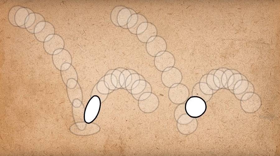 很少有生物体可以很规整地进行机械化的上下进出动作,大多数生物会沿一个圆形路径运动 也叫弧线运动。