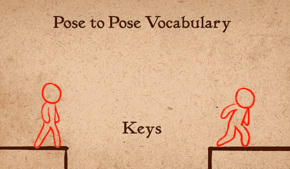 当你用关键动作法工作的时候,有几个相应的单词:主要姿势叫关键张(Keys),次要姿势叫极端张(原画/Extremes),往下分解姿势叫细分张(小原画/Breakdowns)。