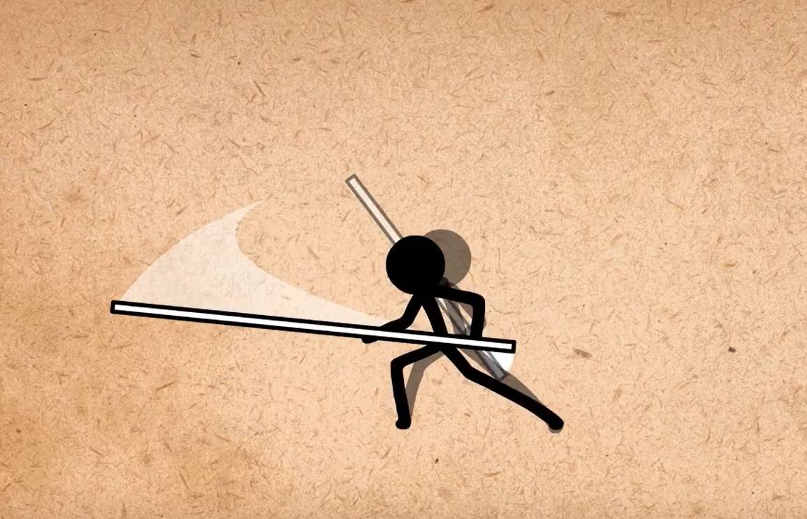 弧线运动可以加在几乎任何物体的运动上,这个人即将落地,我们给他身体加弧线运动: