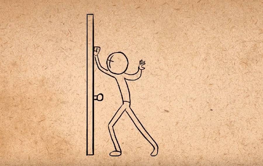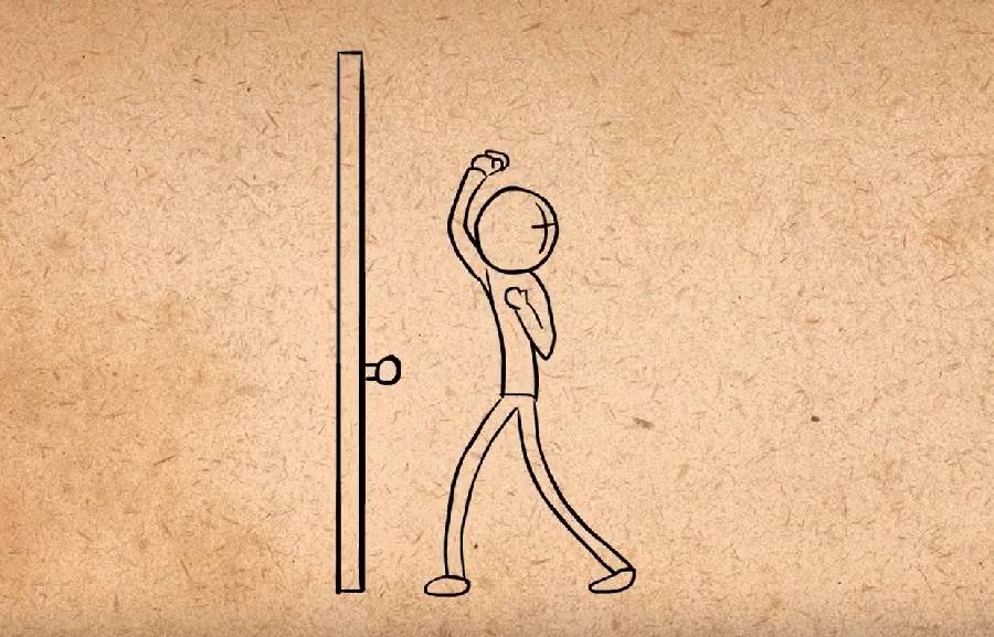 如果在敲门前握住手紧紧夹着,同时头来回看,说明他不想被发现。