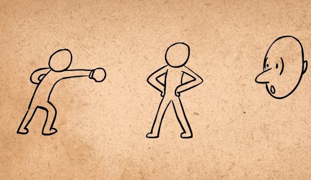 一拳猛击,为了增加冲击力并向观众传达他即将出拳的信息,他将手臂往后伸再出拳猛击,对比来看没有预备动作的拳击结果很弱。