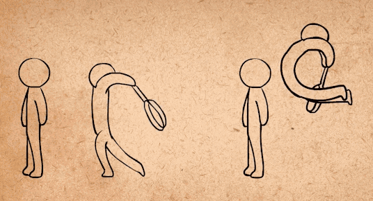 如果运动足够快,使用这个法则能允许你只画一个中间张,画一个中间张,然后在两边添加帧,往正确方向稍微倾斜就可以了。