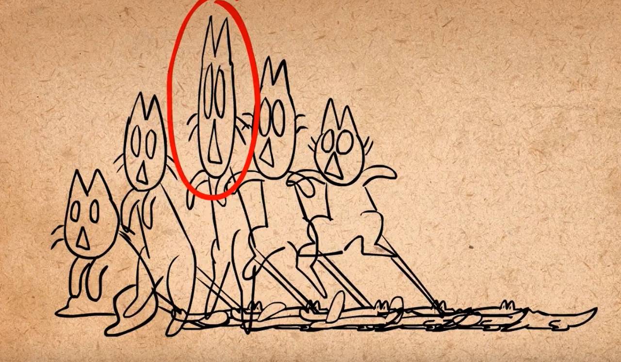 另一个不可预测的动画是重叠动作,比方说有个松软耳朵的角色,你可以给每个姿势都画出他的耳朵,只要有根据地画出中间画便可。