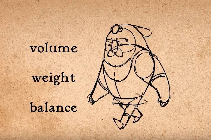 这个法则是要确保形体看上去像在有体积、重量和平衡的三维空间中。如果能够从各个角度画出角色,动画会变得容易很多,这需要有三维透视画法的知识。