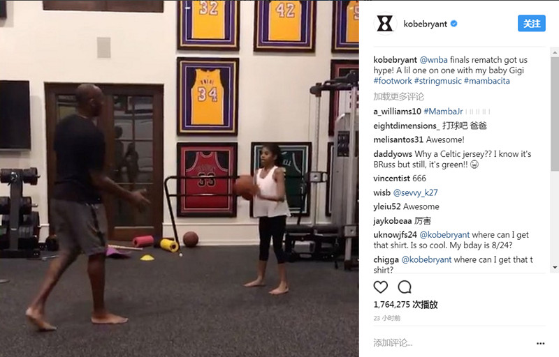北京时间9月18日,科比在Instagram上晒出和二女儿吉亚娜打球的视频,结果这位前湖人名宿被11岁的小姑娘“完爆”。