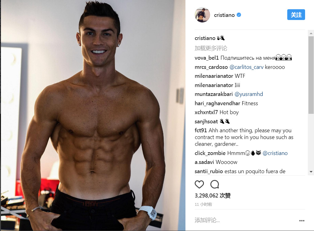 C罗在今年西班牙超级杯和巴萨首回合比赛中,因为推搡裁判而被禁赛5场,此前西甲4轮比赛都没有参加。后天凌晨,西甲联赛皇马主场对阵贝蒂斯将是C罗解禁后的首场比赛。今天凌晨,C罗在Instagram上传照片大秀肌肉,好身材一览无余,还发了“胜利”和“OK”的手势表情,似乎是在表达即将复出的兴奋心情。