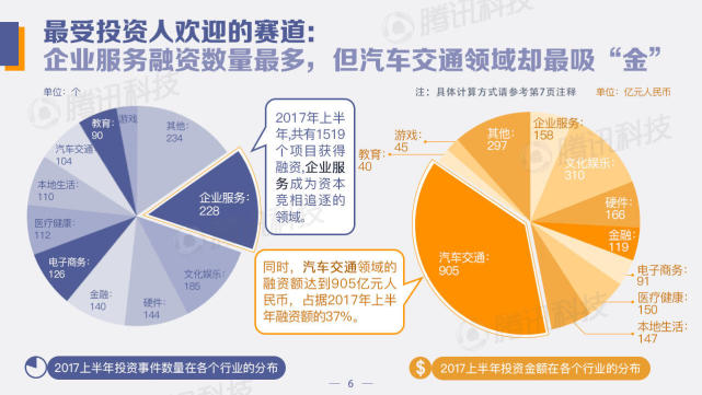 创业公司的获投率有所回升,而资金向汽车交通领域聚集,融资额达905亿,占据上半年总融资额的37%;