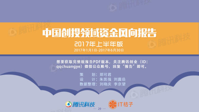 更多精彩内容,将会呈现在腾讯科技与IT桔子联合出品的《中国创投领域资金风向报告(2017上半年版)》中,我们将2017年上半年所有的创投领域的投融资数据揉碎后进行整理和分析,通过更直观的方式,为你多维度剖析创投领域的真正面貌。