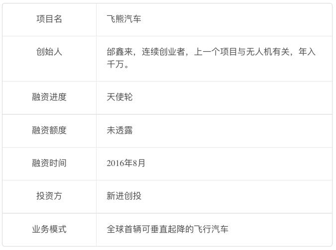 目前,产品还在研发中,已获得新疆建设兵团的意向订单,且A轮融资正在洽谈中。据创始人邰鑫来透露,飞熊汽车将于2019年年底首飞。