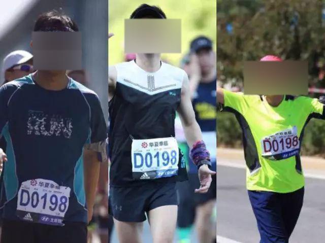 上周日,2017北京马拉松顺利落下帷幕。昨天,一组“套牌”跑者的照片却在网上热传。照片中三位北马中的不同跑者,佩戴号码牌却均为D0198。