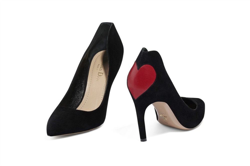 Dior Amour系列鞋款是Dior 2017秋冬系列的主角之一,是新任创意总监同时也是品牌首位女性创意总监Maria Grazia Chiuri的作品。这款黑色尖头女鞋在鞋跟处作心形留白,用红色小羊皮填补,即“红心”。鞋子总体为通勤高跟鞋廓形,呈一定弧度的鞋跟设计灵感来自经典的Talon Choc,它是1959年时任创意总监为品牌带来的第一款独特的轮廓曲线。