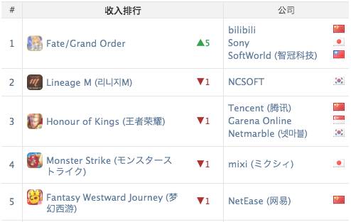 这款游戏在中国大陆由B站发行,在收入榜也都多次进入前十。当然,FGO在国内的收入排行,以及全球各地区的下载排行,与《王者荣耀》都有着巨大差距。