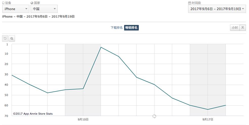 FGO最近两周的中国区iOS收入排名情况