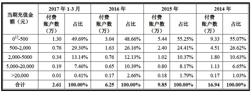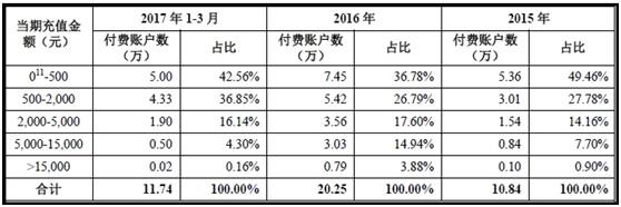《梅露可物语》付费账户年度充值具体分布情况: