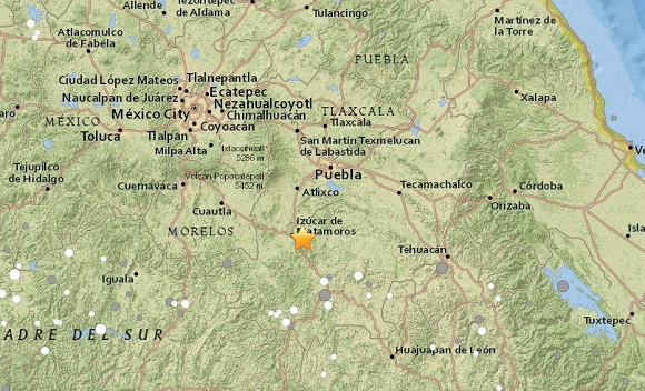 美国地震调查局数据显示,此次地震发生在当地时间下午1:14,震中位于普埃布拉州拉波锁市附近,距离墨西哥城东南方向约123公里。