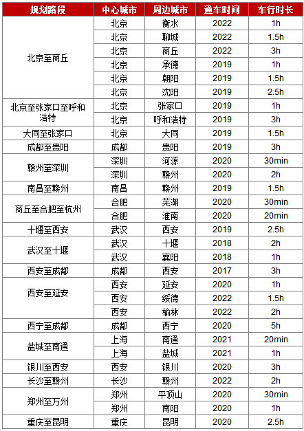 表:“十三五“规划高速铁路通车后中心城市与周边城市间距离(部分)
