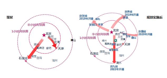 图:新建高铁通车后北京1小时高铁圈城市范围变化