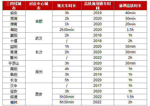 图:部分三四线城市高铁开通后到中心城市时间对比
