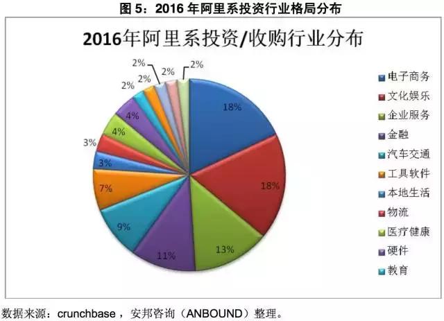 图5:2016年阿里系投资行业格局分布