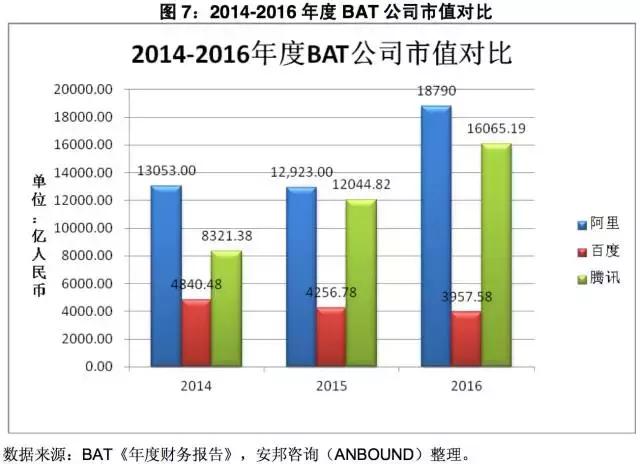 图7:2014-2016年度BAT公司市值对比
