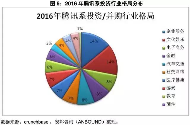 图6:2016年腾讯系投资行业格局分布