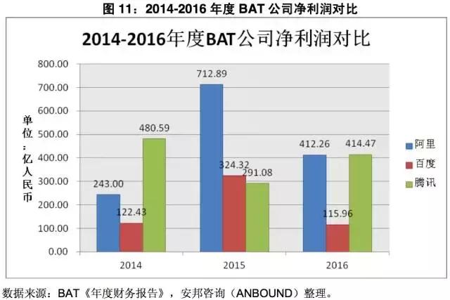 图11:2014-2016年度BAT公司净利润对比