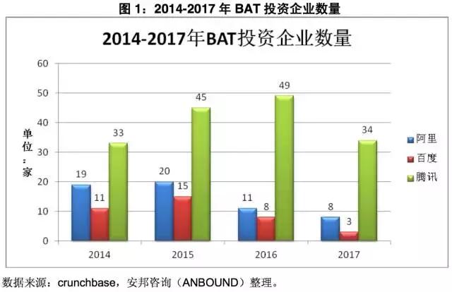 图1:2014-2017年BAT投资企业数量