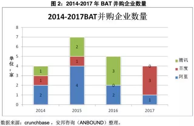图2:2014-2017年BAT并购企业数量