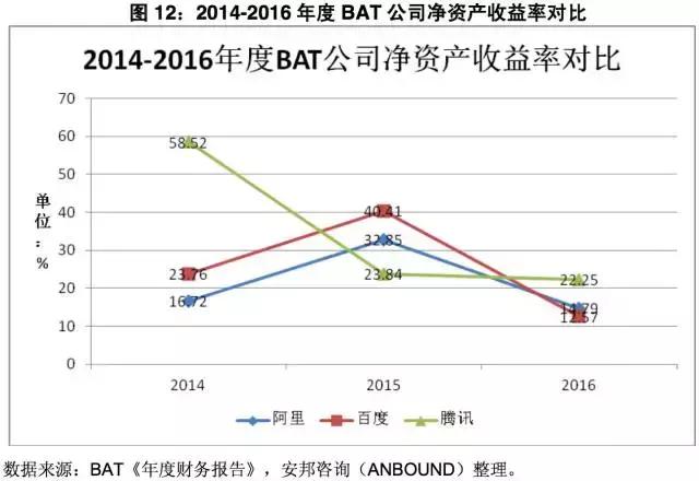 图12:2014-2016年度BAT公司净资产收益率对比
