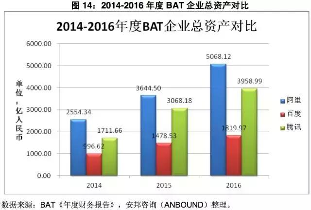 图14:2014-2016年度BAT企业总资产对比