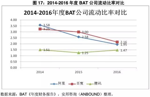 图17:2014-2016年度BAT公司流动比率对比