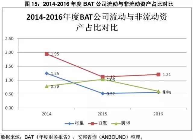 图15:2014-2016年度BAT公司流动与非流动资产占比对比