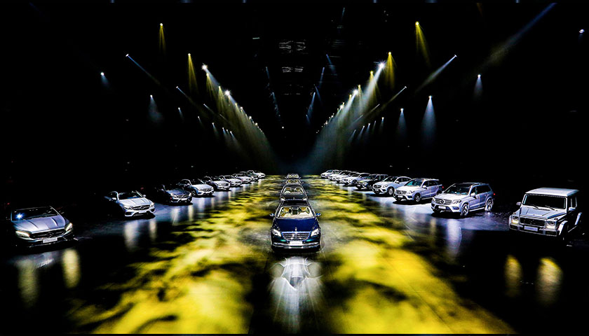 随着大幕开启,一条长约80米的“时空走廊”更是将历代奔驰S级轿车集中展现在面前。步入主会场,一番言辞过后,观众席以180度转向后方,此刻时空走廊再次开启,在走廊两侧奔驰全系车型的注视下,新一代S级轿车悠然驶出。