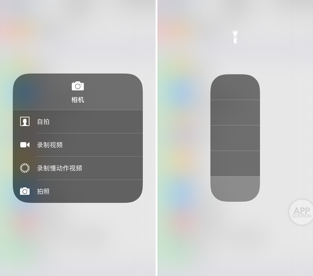 以手电筒为例,你可以调整它的亮度等级。以相机为例,你可以选择 4 种不同的拍摄模式:自拍、录制视频、录制慢动作视频、拍照。