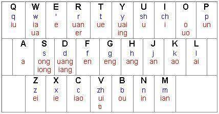 但是,iOS 原生的双拼输入法采取的是搜狗形码的双拼编码,是一种相对传统的方案(请脑补对应电脑上的智能 ABC)。输入键位如下图,会占用分号键。