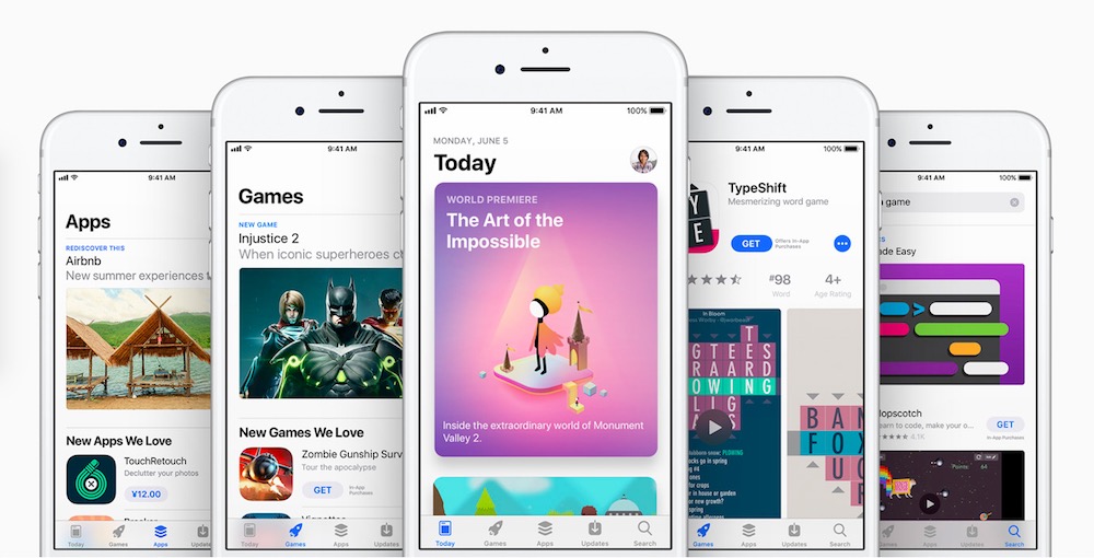 App Store 分为了今天、游戏、App、更新和搜索这 5 大类。