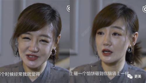 然而视频里她的脸却成了“僵尸脸”,一脸残灰还有点僵,山根处也变粗了,目测是打了玻尿酸吧~