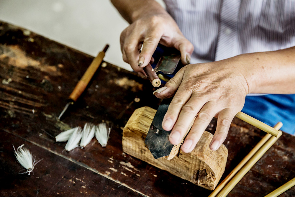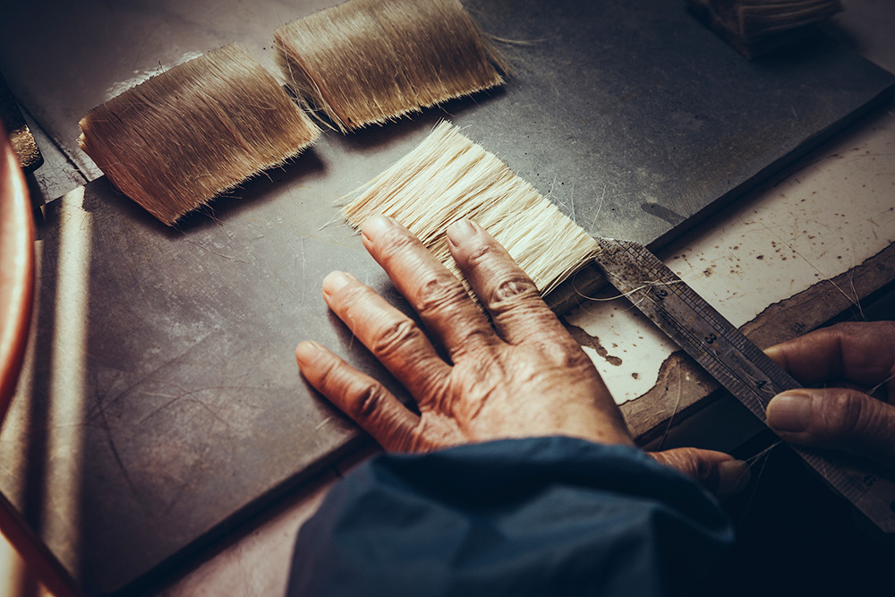 修笔和检验必须细之又细、精之又精,一支上品宣笔要反复修笔多次,并用放大镜来检查。