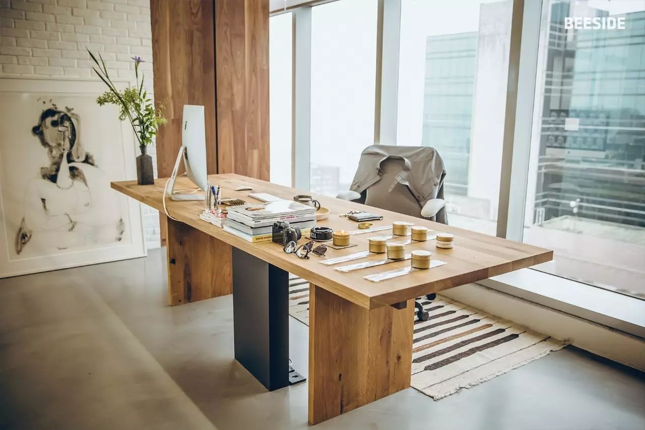 MADNESS 的办公室虽然算不上很大,但装潢却简单整齐,倘大的玻璃映照着的是木桌的温暖感和白色砖墙的简约感。