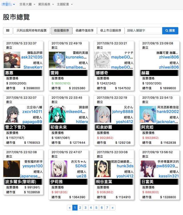 日前,中国台湾地区的一群死宅建立了一个域名为 acgn-stock.com 的网站,其主要功能就是发行和交易ACGN角色的股票。