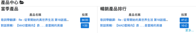 截至ACGx发稿前,雷姆公司在9月15日上市之后,一共推出了两款影音类产品。第一款产品是《【入教圣曲】Re : 从零开始的异世界生活 第18话插入曲『Rem - Wishing』中文歌词 完整版/Full》,而第二款产品则是《【MAD雷姆向】昴 . . . 是雷姆的英雄(建议使用耳机哦^^)》。
