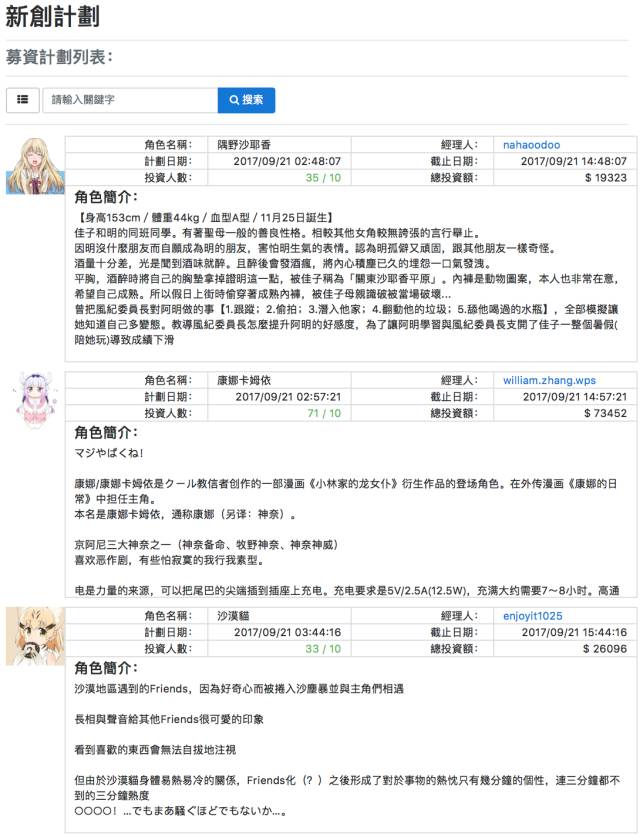 我们可以看到,像来自《笨女孩》中的隅野沙耶香、《小林家的龙女仆》的人气角色康娜卡姆依、《兽娘动物园》中的沙漠猫等ACGN角色,都在投资人的支持下发起了IPO。在这里,我们衷心祝愿每一家公司都能顺利上市敲钟。