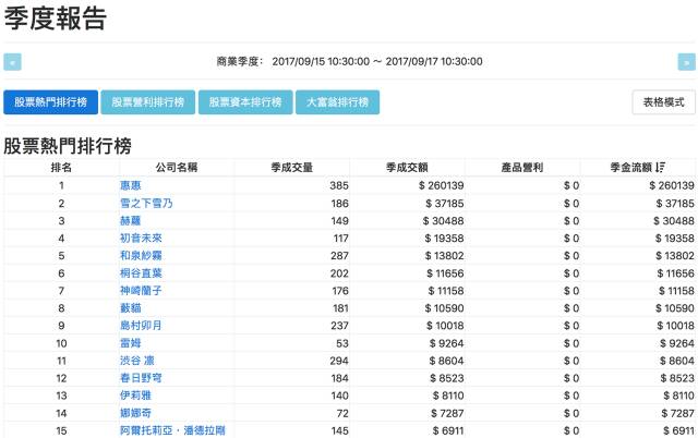 至于“股票资本排行榜”和“大富翁排行榜”这两个板块,ACGx就不再进一步展开了。这是因为“股票资本排行榜”的结果与“热门股票排行榜”基本保持一致,而登上“大富翁排行榜”的投资人基本上都是中国台湾地区的死宅,并没有太多值得深入研究的地方。