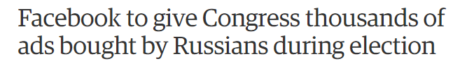 【Facebook向国会提交俄购买的数千条广告】Facebook创始人扎克伯格周四在一个直播视频中说,将向国会提供俄罗斯人在2016年美国大选期间购买的3000条广告的内容,以支持美国正在进行的调查,并将此举视作社交媒体公司重新努力保护世界各地在选举中“诚信”的一部分。此外,扎克伯格还表示公司将为政治广告的透明度建立一个“新标准”,以便用户能更好地了解哪些网页为付费的广告。
