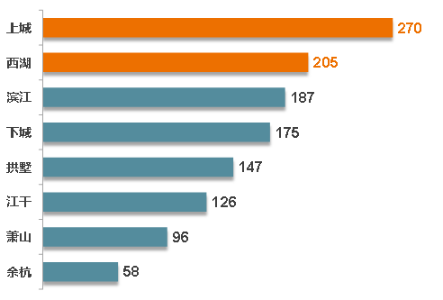 上城区和西湖区的存量住宅均价步入3万+已毫无悬念,“国际滨”的存量住宅均价位居第三位有点出乎意料。