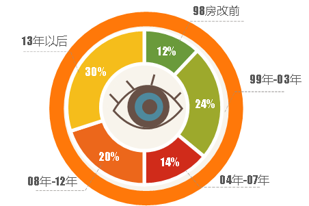 这一数据可以辩证来看。一方面,杭州住宅市场的老小区比重确实较高,意味着房地产市场发展成熟;另一方面,5年以内的次新项目比重虽然不高,但相对于市场累积的20年平摊到5年的份额来看,这一比重又相对较高,意味着2013年以来的房地产市场整体活跃度很高。