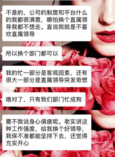 先说我同学。人在成都,工作节奏比北上广友好太多了。前几年在一家不错的培训机构工作,做杂志、办活动,算是很享福的。后来公司人事变动,交好的朋友走了奇葩的同事来了,她不想忍,2017年换了现在这个工作。平台大很多、待遇好很多,又遇到一朵奇葩。