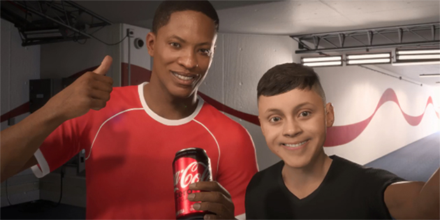 如果不熟悉这两款游戏或者对足球无感的读者可能会对这支广告有很多的疑问,但只是看表面的话这支广告大概讲的就是一个粉丝在安慰受到其他负面声音影响的Alex Hunter。粉丝将手中的可乐递给他之后,Hunter的心情变得好起来还和粉丝拍了张自拍。