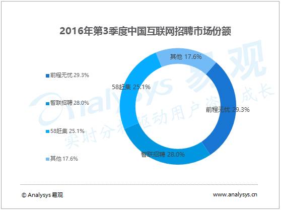 数据来源:易观《中国互联网招聘市场季度监测报告2016年第3季度》